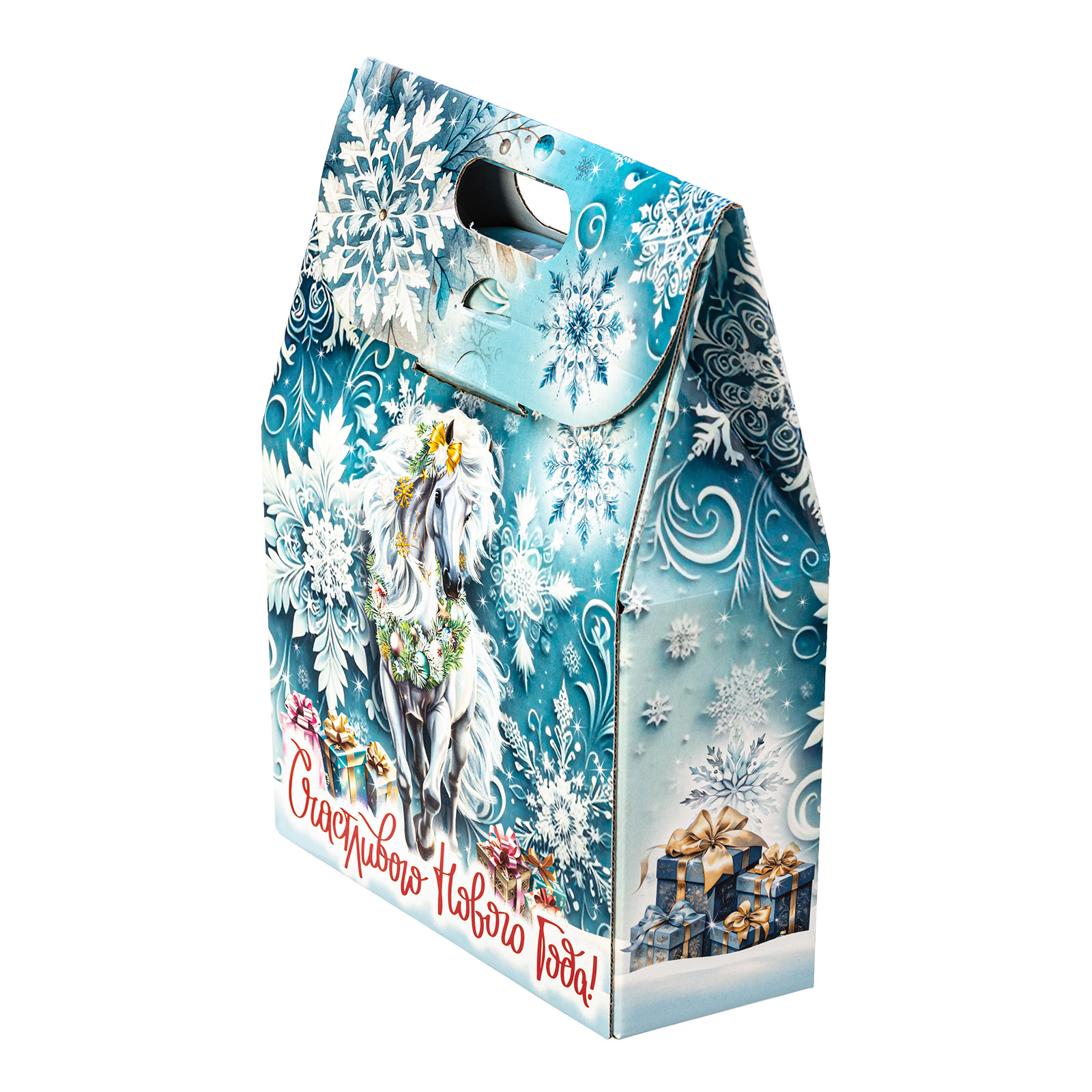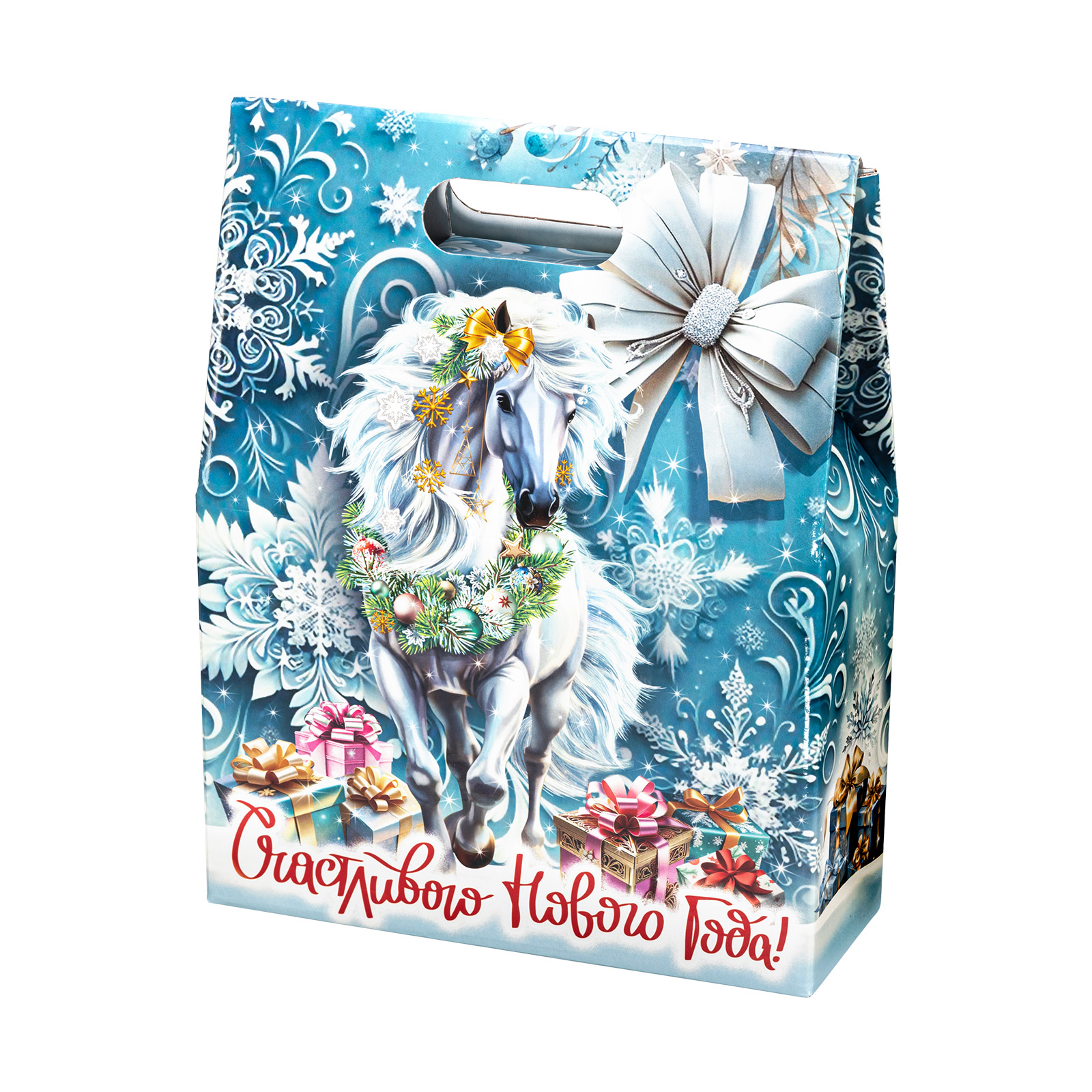 Новогодние сладкие подарки с изображением символа года - это нестареющая классика. Подарочный набор “Белоснежная” - это идеальное сочетание креативной подарочной упаковки и вкусного разнообразного конфетного состава. Подарок представляет собой небольшую картонную сумочку с изображением белой волшебной лошадки на фоне зимнего леса. Снизу красуется контрастное поздравление, а наверху есть удобная ручка. Внутри содержатся вкусные лакомства, с которыми каждое праздничное чаепитие приобретет еще более торжественное и веселое настроение. Подарочный набор - универсален. Его можно вручить как ребенку, так и взрослому.
