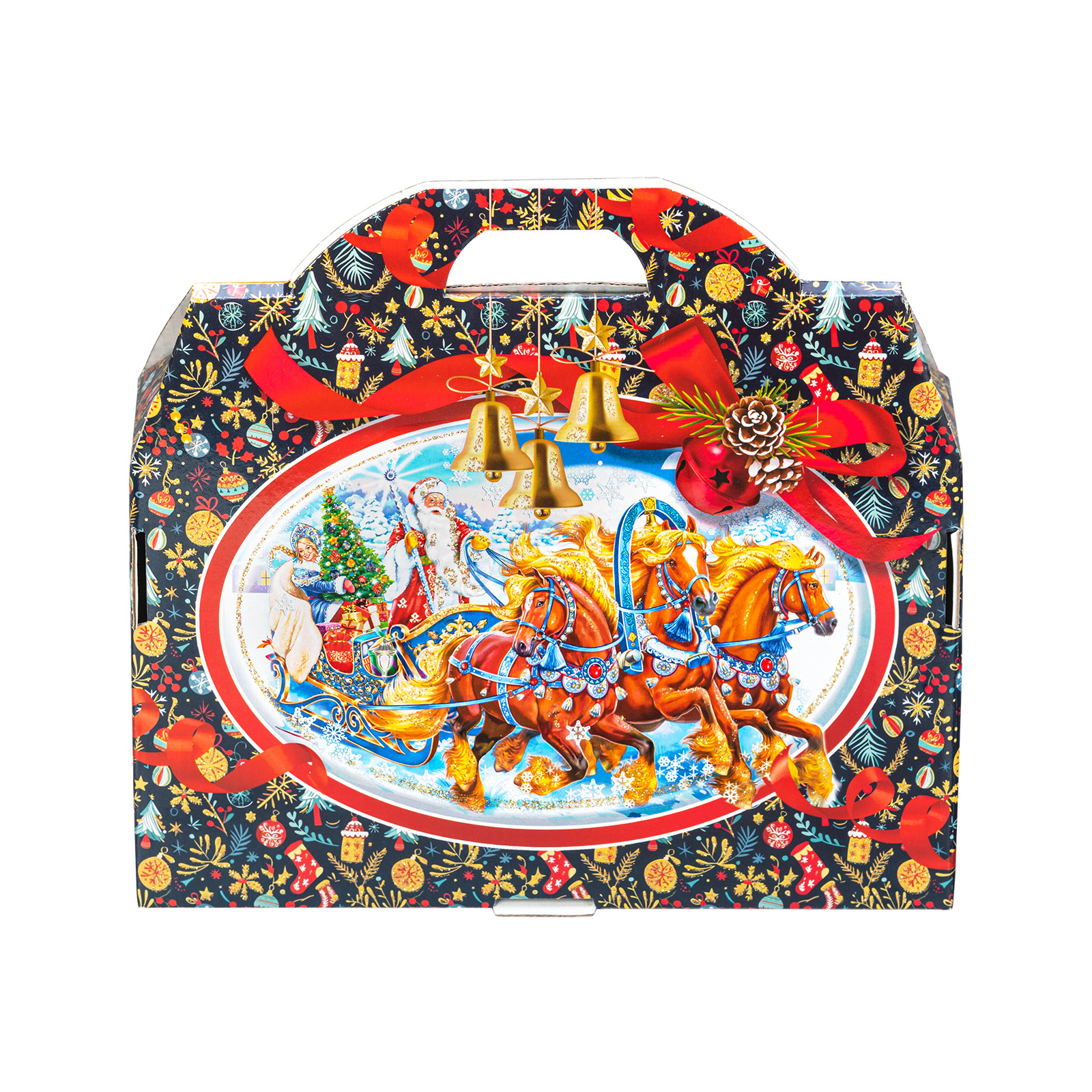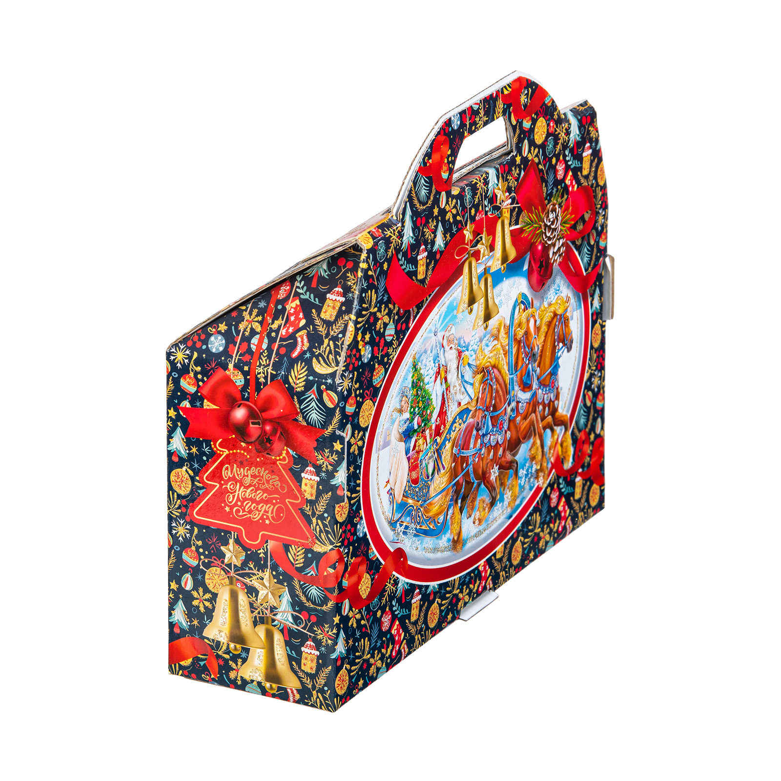 Представляем вам Новогодний Сладкий Подарок в форме стильного чемоданчика! Этот уникальный набор подходит как для подарков близким, так и для корпоративов, создавая атмосферу волшебства и тепла в эти зимние дни!Яркая упаковка сразу привлечет внимание своим оформлением: темно синий фон здесь идеально сочетается с контрастными элементами. Наличие удобной прорезной ручки делает подарок очень удобным для транспортировки. Внутри набора находятся разнообразные вкусные сладости, которые станут украшением любого праздничного стола. Помимо сладкого наполнения, набор может порадовать небольшим памятным сувениром в виде символа наступающего года.