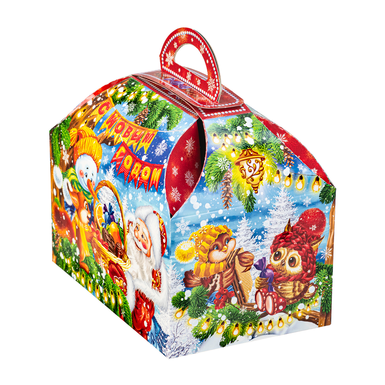 Подарите своим родным и близким безграничную радость вместе с новогодним сладким подарком “Сундук лакомств”. Этот подарочный набор представляет собой небольшую картонную коробочку в форме сундука с удобной ручкой сверху. На упаковке нанесен очень яркий привлекательный рисунок, на котором Дед Мороз и его друзья обмениваются подарками и веселыми улыбками. В состав подарка входит 900 грамм вкусных и разнообразных лакомств от ведущих кондитерских предприятий, а также небольшой памятный сувенир в виде символа наступающего года.