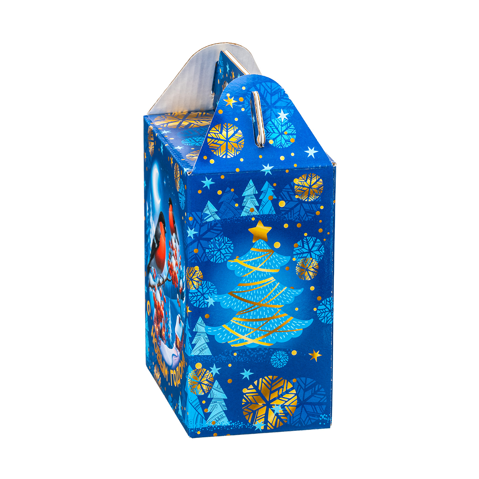 Интересный вариант новогоднего подарка – «Вестники зимы». Он представлен в разделе Картон. Отлично подойдет на подарок в 2026 году с символом Лошадь. Внутри такого презента находится кондитерский набор весом 1000 граммов.